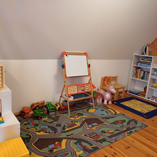 Unsere Spielscheune bietet Abwechslung für Groß und Klein und ein großes Angebot an Spielsachen für außen und auch innen – falls das Wetter mal nicht mitspielt.
