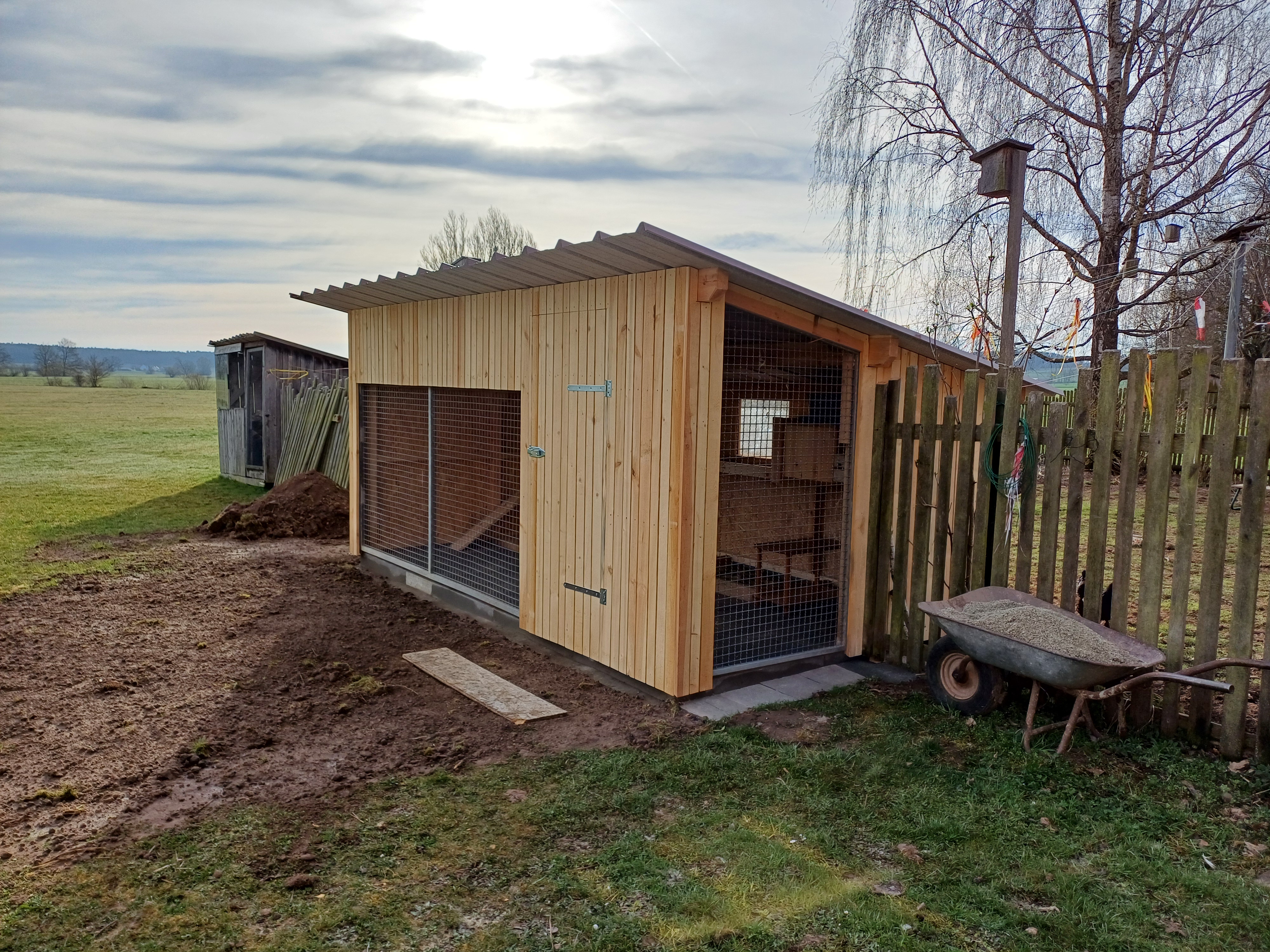 Unser neuer Hasenstall ist fertig und seine neuen Bewohner, unsere Löwenkopfhasen Simba, Hazel, Amy und Snowy, sind bereits eingezogen.