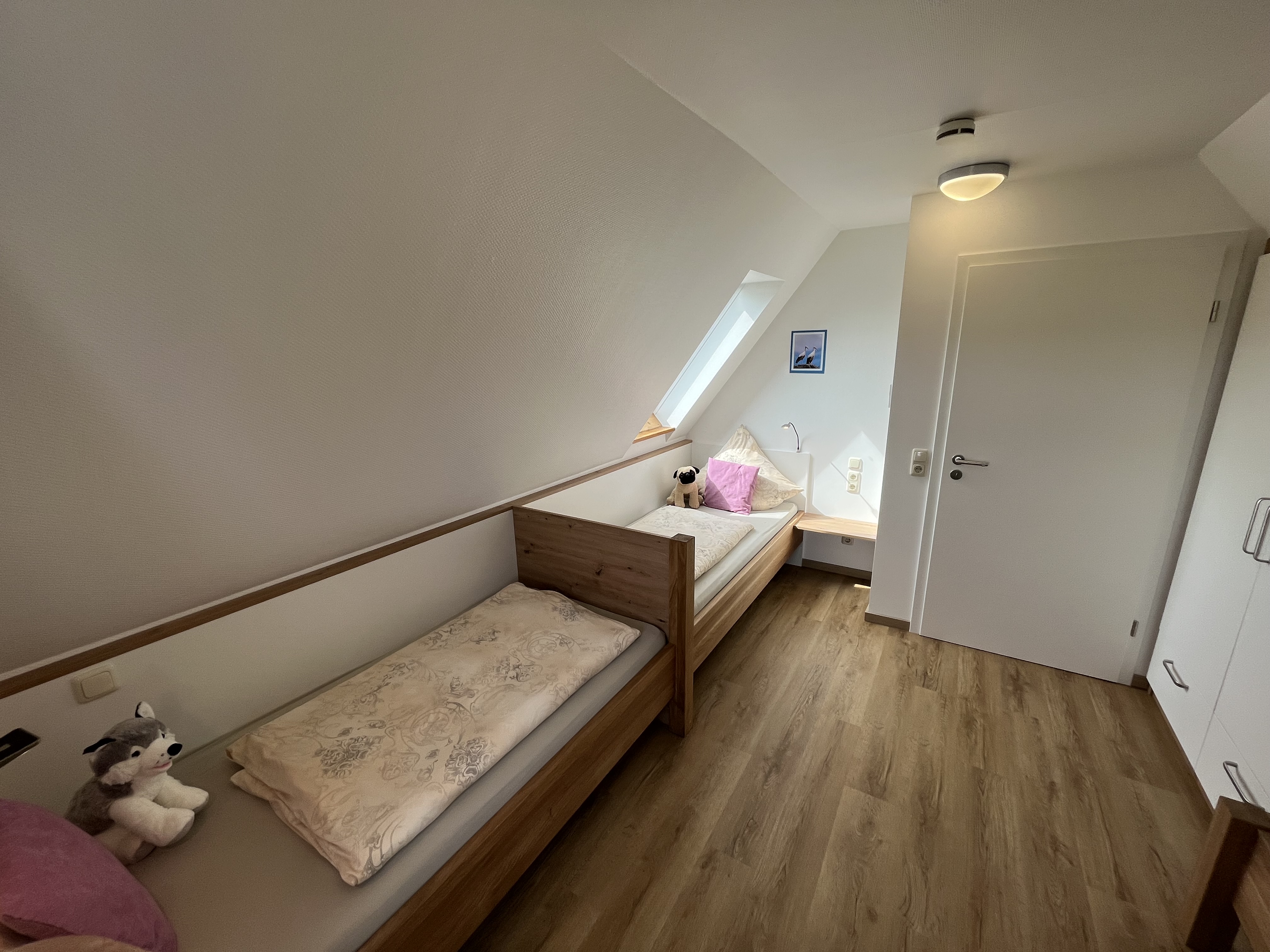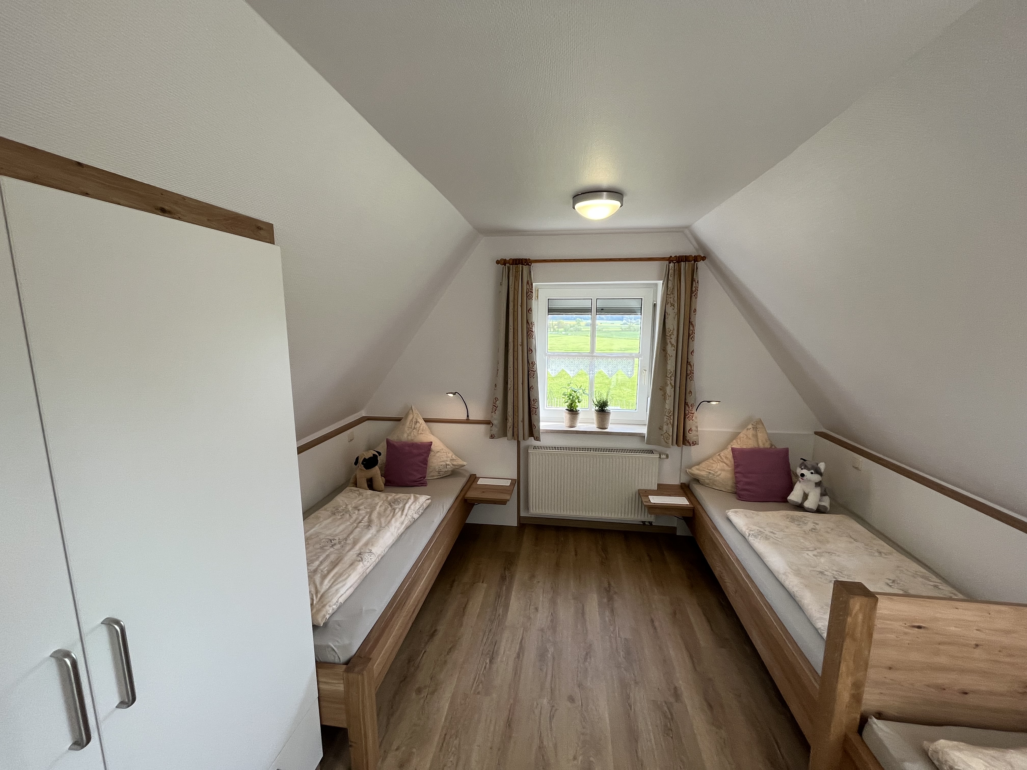 Unsere Ferienwohnung „Storchennest“ hat zwei Stockwerke und ist damit die größte Wohnung mit drei Betten in der Schlafgallerie. Von hier oben haben sie die beste Aussicht auf die Altmühlauen.
